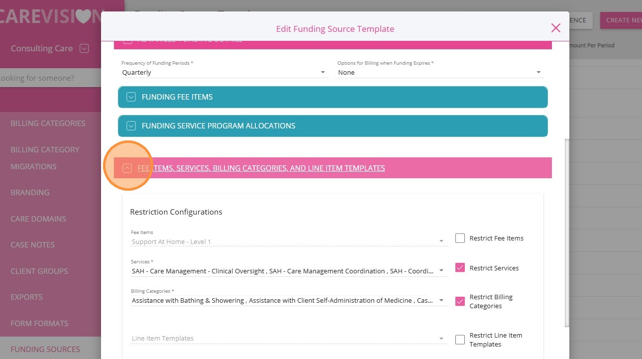 Link Billing Categories and Services to SAH Funding Source Templates