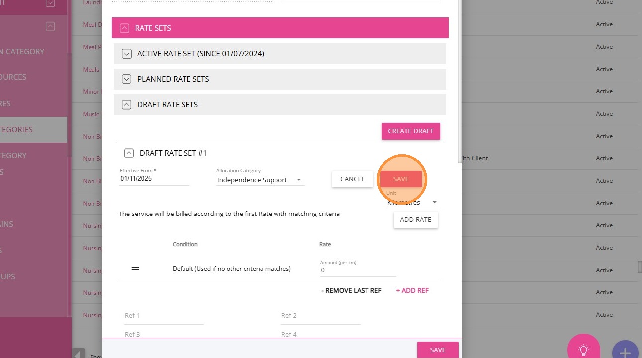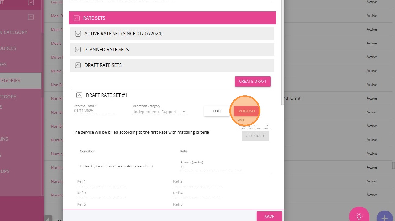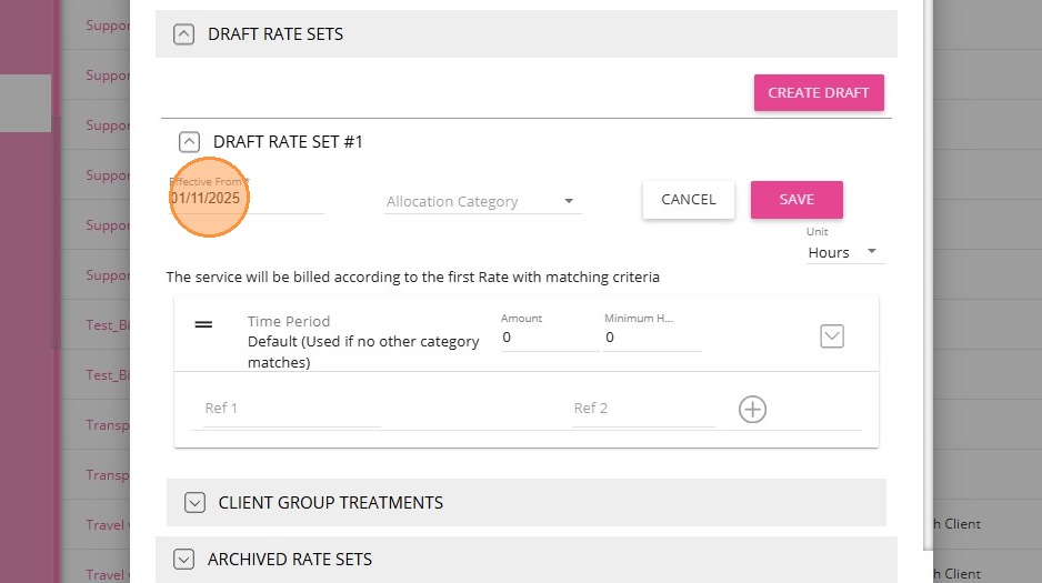 4. Under Draft Rate Sets, specify the Effective From date.