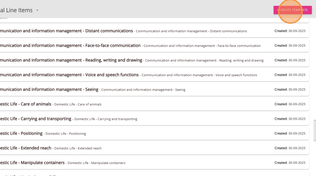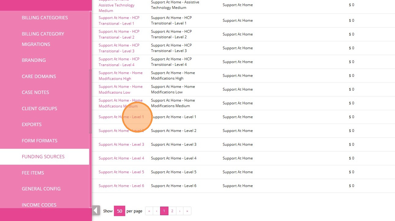 2. Find the relevant Support at Home funding source template (for example, "Support at Home Level 1").