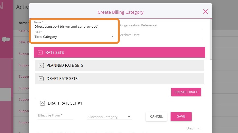 3. Enter the following details for the new billing category. Example: