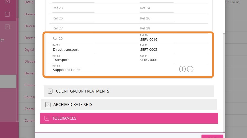 For Support at Home, the Reference codes under Reference 30 to 35 are: