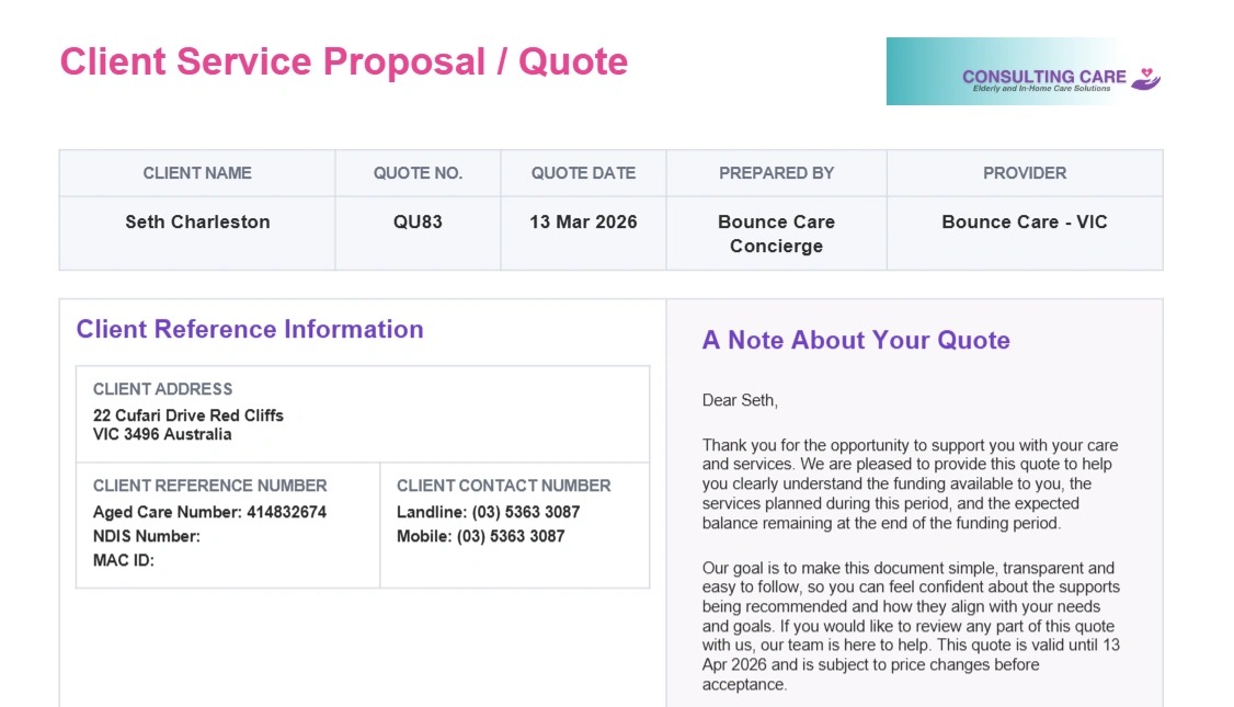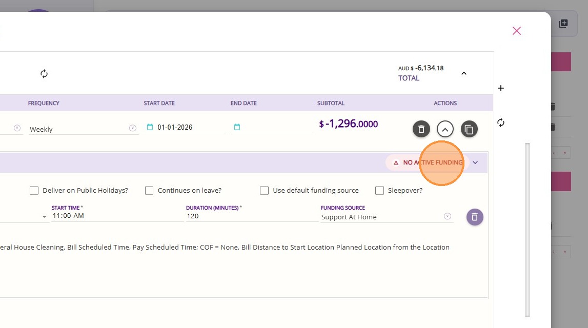 For services quoted for a client, the Subtotal column now displays an effective date range based on the Starts On and Ends On fields. If no funding source is selected, no dates will be displayed.