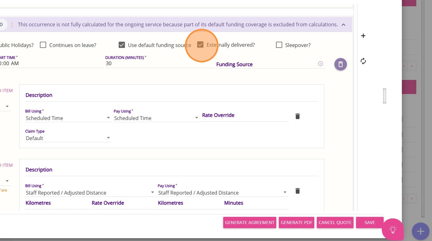 You can now see the Externally Delivered? checkbox when you add a service in a quote for a client.