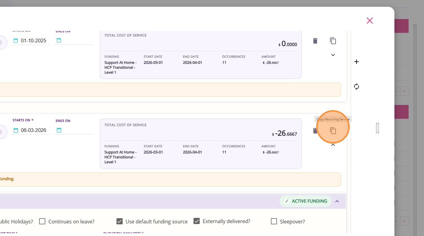 In the Recurring Services and Once Off Items sections, the following flags have been added: