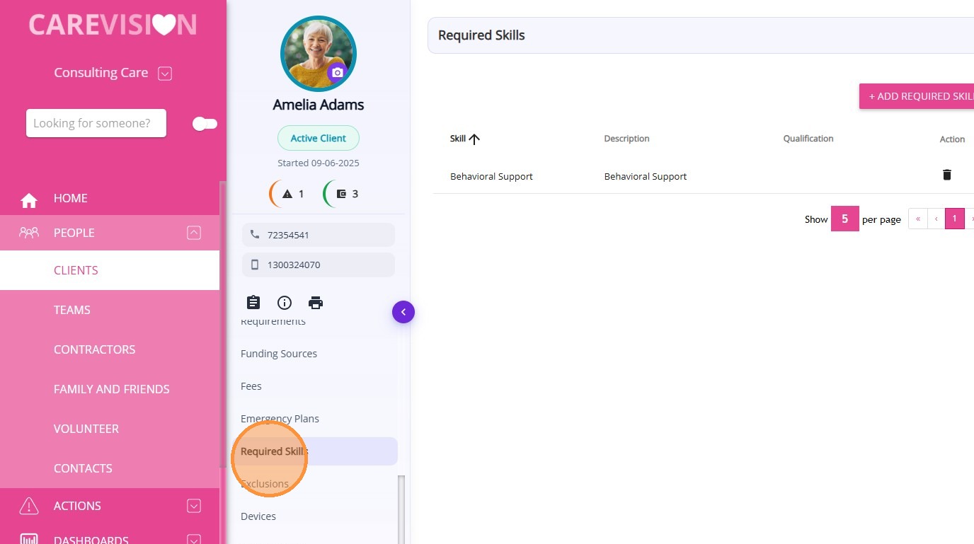Keywords: client required skills, staff skill requirements, care worker skills management, disability support skills, client care skill matching, healthcare staff competencies, service delivery skills, client support requirements, carevision skills tracking, staff qualification matching