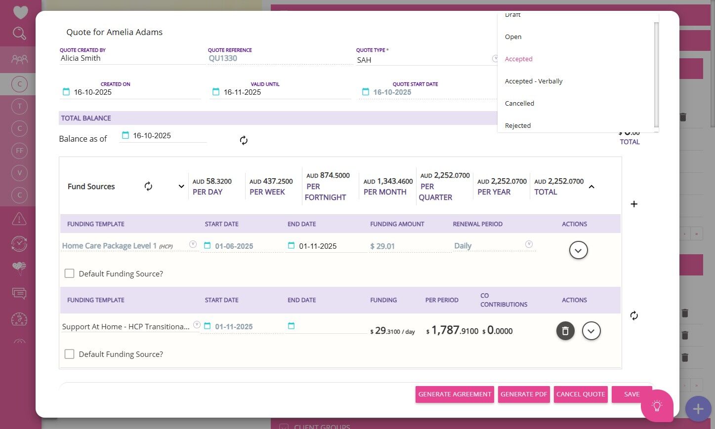 - You can download the quote to discuss the new information with the client as part of your conversation about transitioning to Support at Home. This allows the client to see how the transition will impact their overall funding and services.