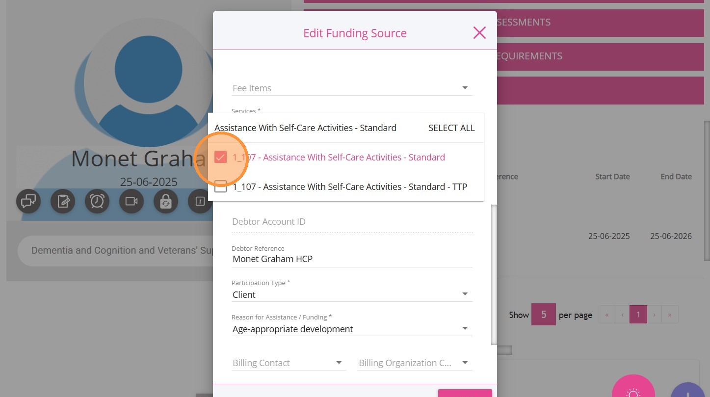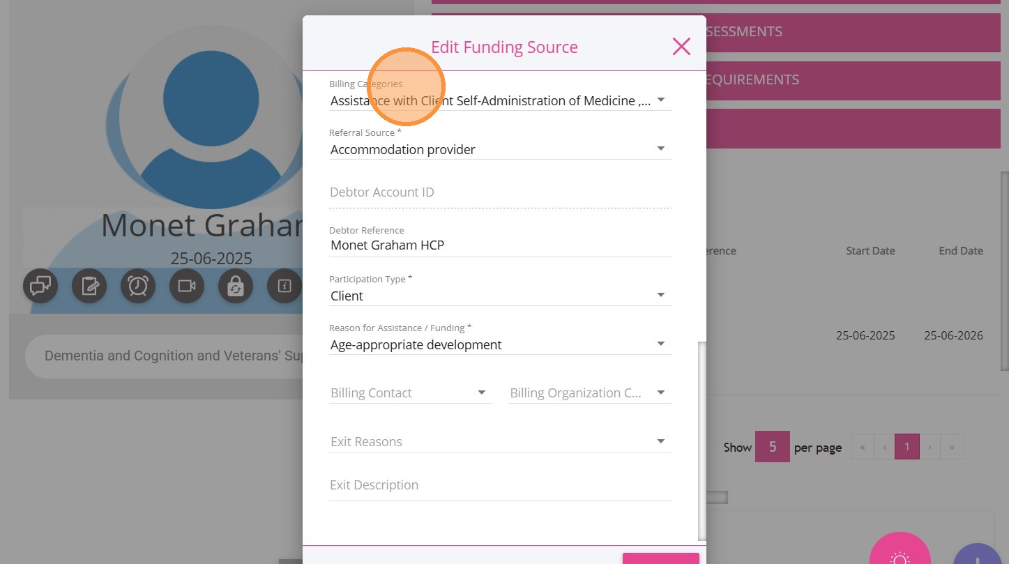 2. Check the Funding Source section to ensure the client is using the correct funding source.