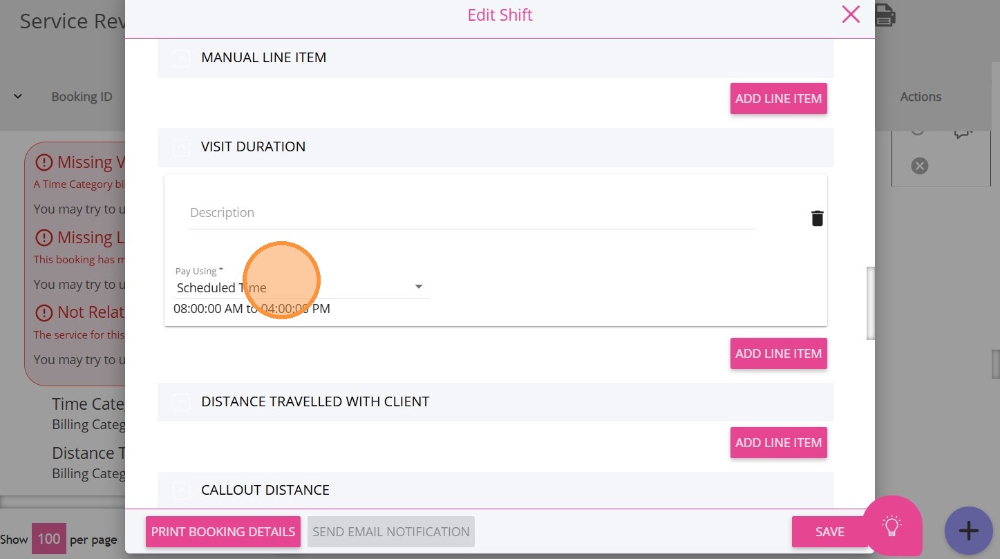 Staff performed extra time or tasks not in original booking | Review line items and notes for discrepancies or staff-reported changes. | Adjust the shift duration or add extra line items for additional approved work. Update billing and pay accordingly, documenting the approval. |