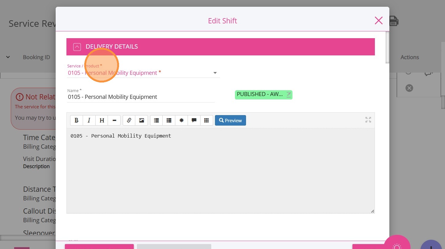 2. In the Delivery Details section, check the Service/Product field to identify the service included in the client’s booking.