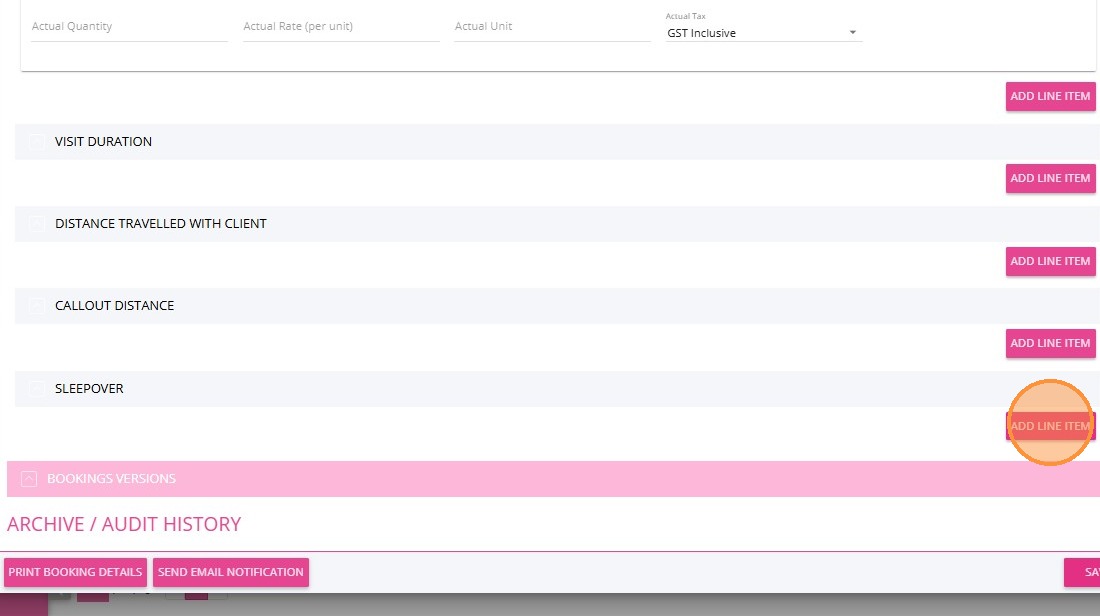 2. In the Line Items section, click Add Line Item under the Sleepover section.