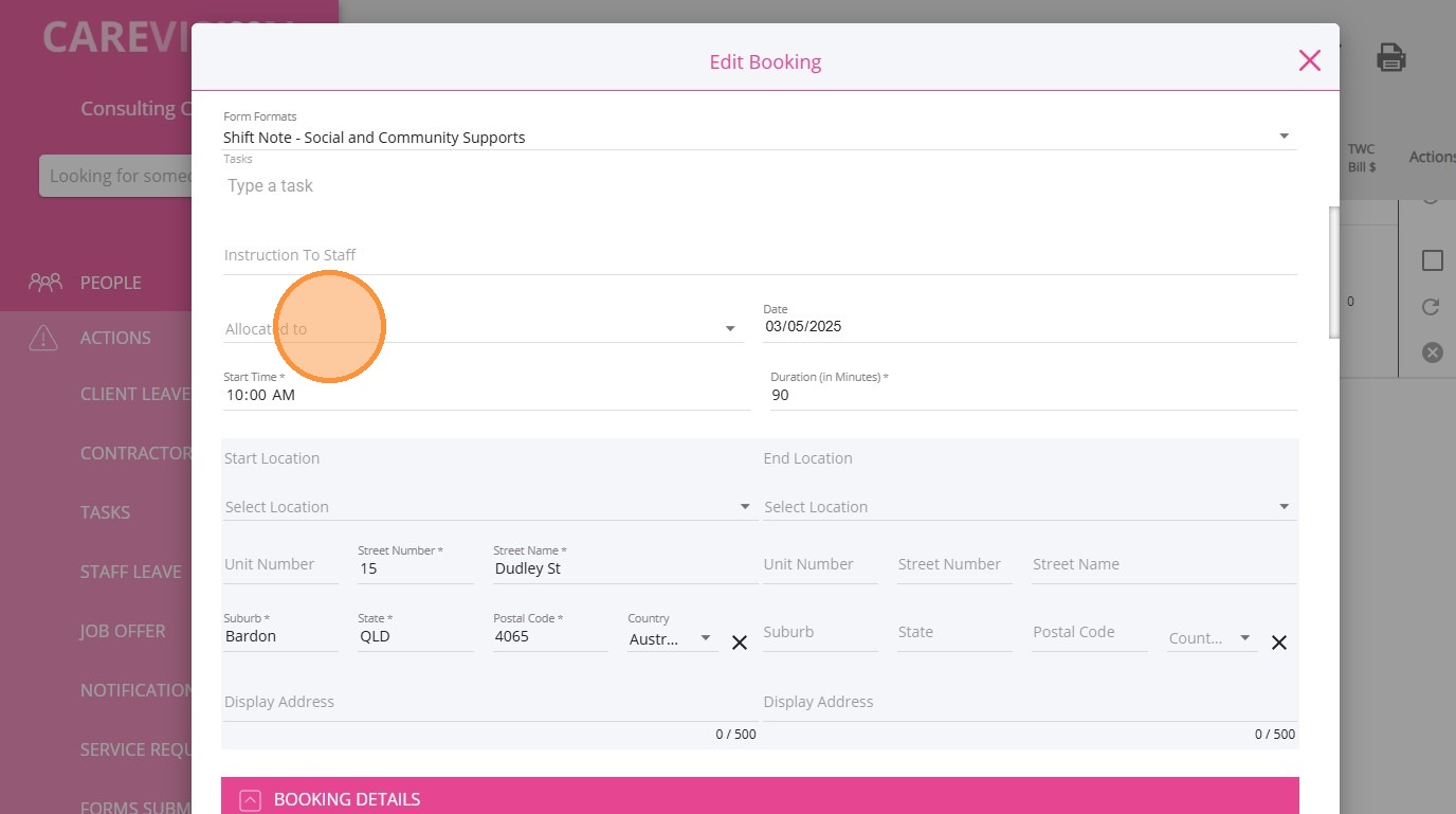 2. In the Delivery Details section, find the Allocated To field and select the appropriate staff member from the dropdown to allocate to the booking.
