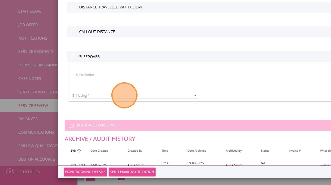 3. In the Sleepover section, select the appropriate sleepover billing category.