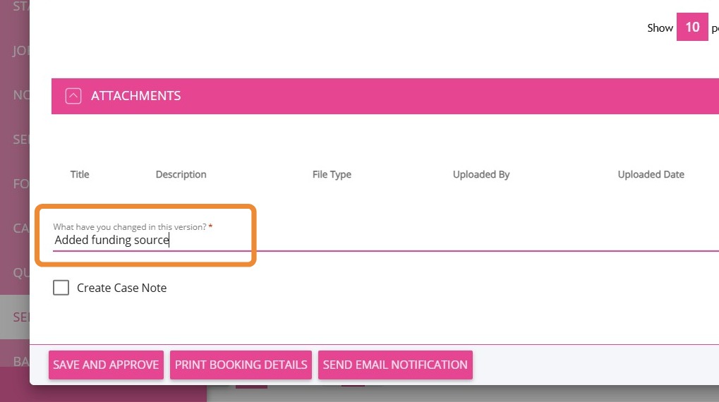 4. Scroll to the bottom of the Edit Booking page and describe your changes in the What have you changed in this version field.
