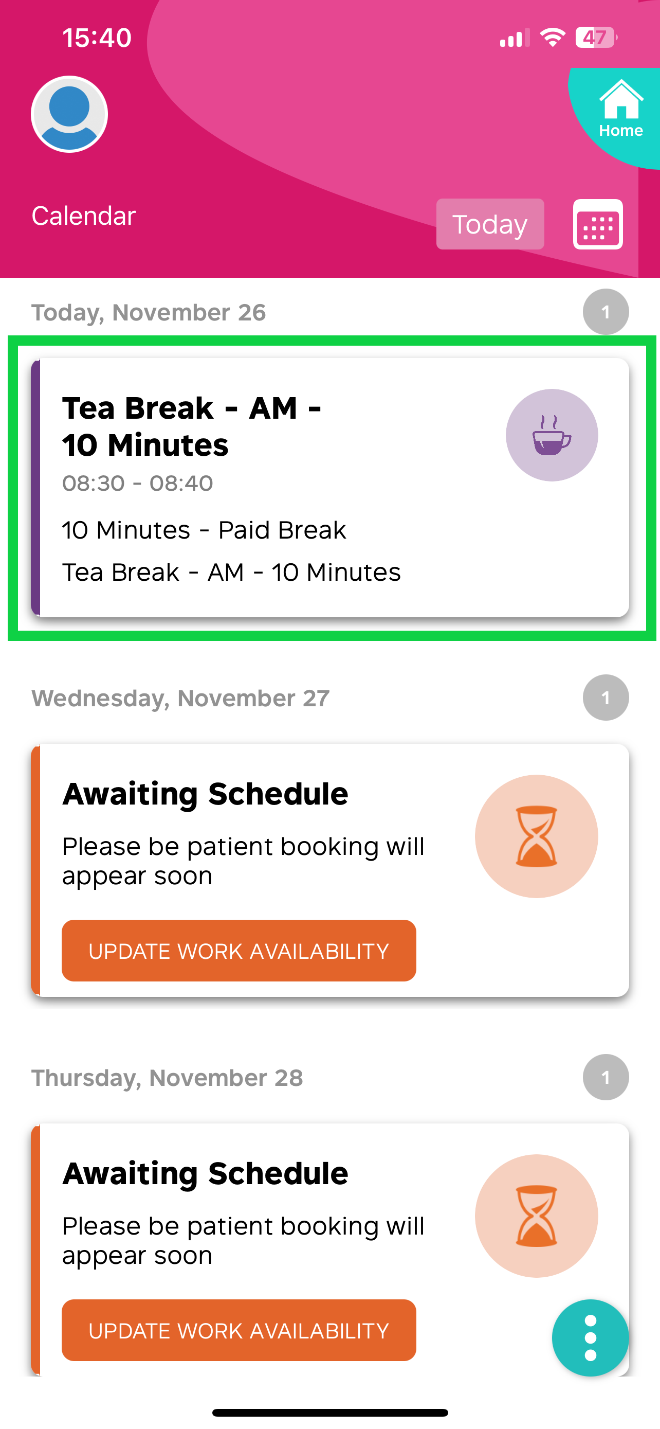 Staff Visibility of their Scheduled Breaks on Mobile: