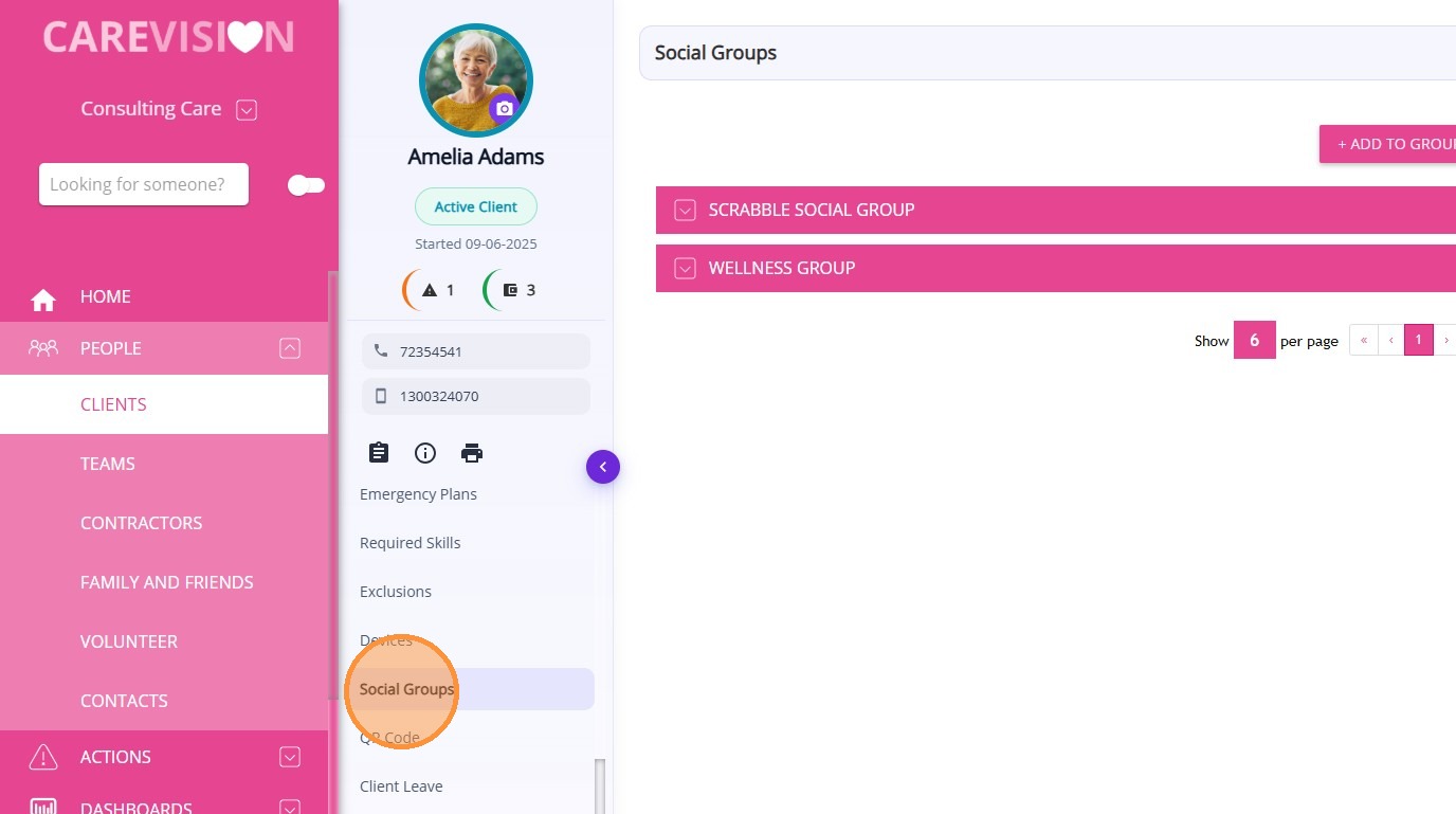 Keywords: social groups, client social groups, manage client groups, carevision social groups, community groups carevision, client group membership, add client to group, social group participation, client activities groups, carevision community features