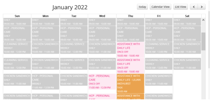 If it was already accepted by field carer professionals or the coordinator already change the status to accepted, the color in calendar view will be changed to dark pink background with white text.