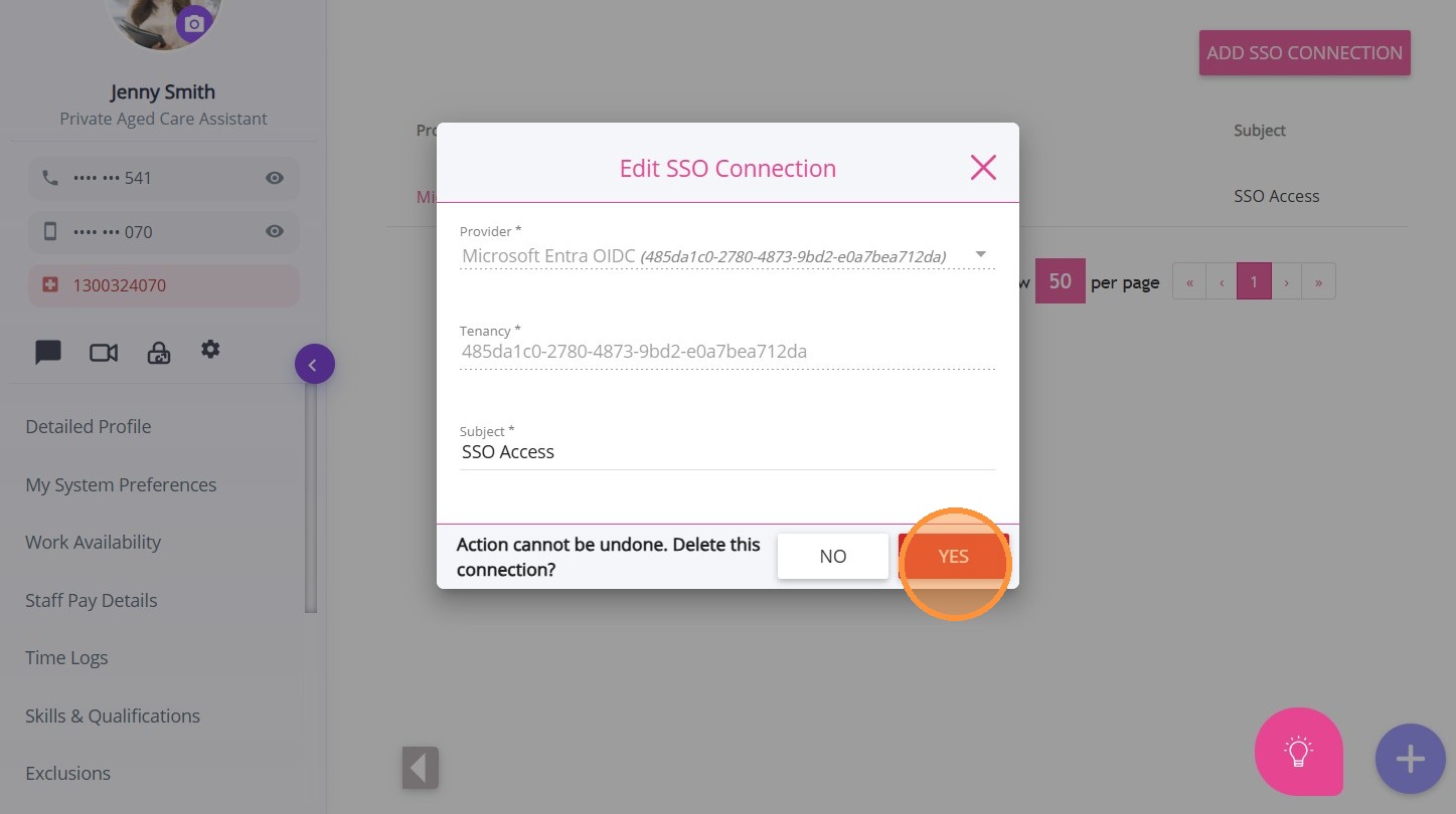 Before a staff member exits the organisation, it is best practice to remove their Single Sign-On (SSO) connection. This prevents them from accessing the CareVision portal or mobile applications, helping maintain system security and preventing unauthorized access.