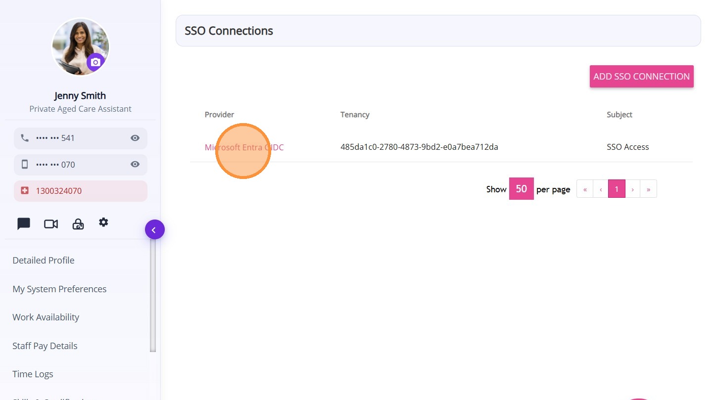 3. Click the SSO provider associated with the staff member.