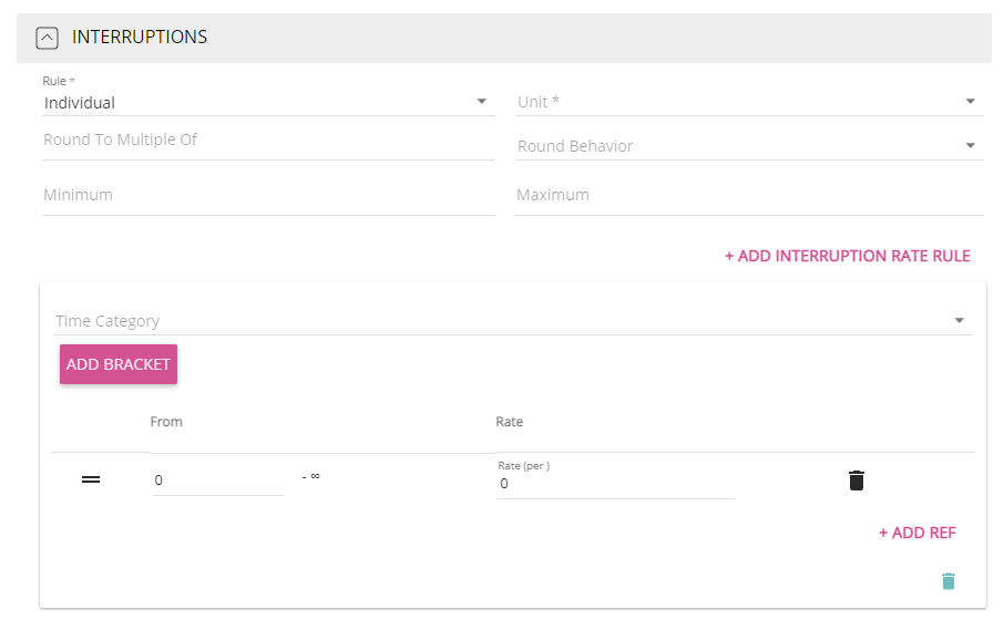 Once a Category Type is chosen, users will be able to put in Rate Sets and rules. While setting up Rate Sets for the Categories, users need to enter (1) an Effective From Date to activate the Category, (2) Reference numbers to support Export filtering in the later stage, (3) a Unit. Billing Categories can have: