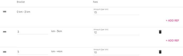 - Conditional - If the number of KMs matches to the bracket then the rate on the bracket will be charged