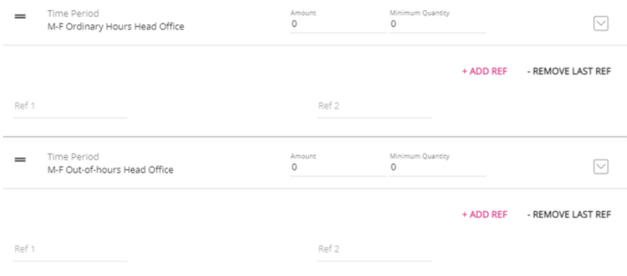 For Time Category only, users can set up Start Time Tolerance and Duration Tolerance (%) for Billing and Payroll, as Services with Time Categories charge according to the time. Additionally the Time Category also allow you to set a minimum billing quantity, which allows for services to be scheduled for shorter periods but to always charge a minimum duration.